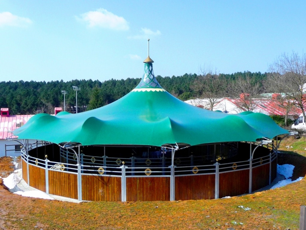 Atlar için tasarlanmış olan Horse Walker, son derece geniş bir alan ortaya koymaktadır. Bu alanda atlar rahatlıkla hareket ederken aynı zamanda gösterimleri yapılabilir.